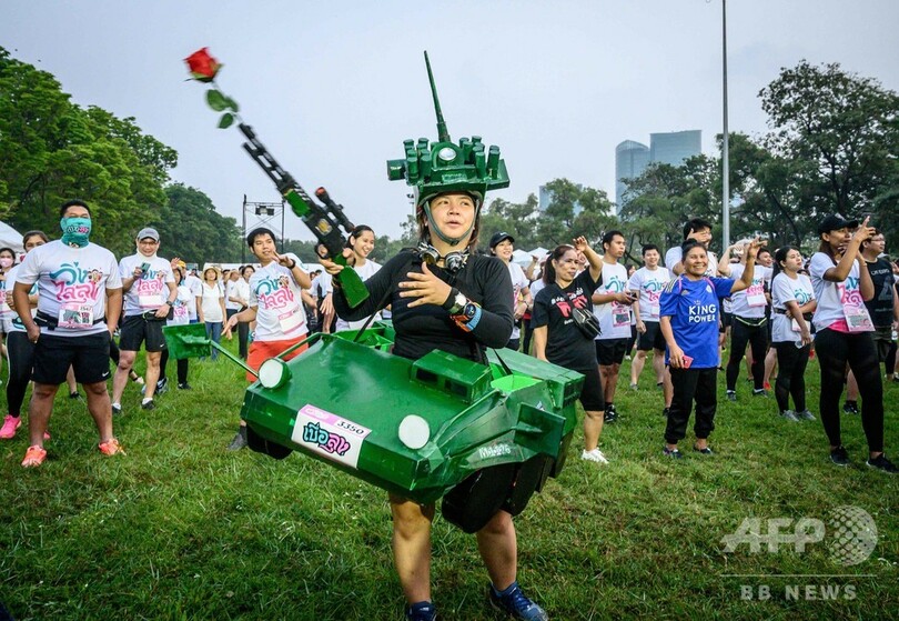 ランナーらは同日未明、バンコク市内にある公園に集合。元陸軍司令官のプラユット・チャンオーチャー(Prayut Chan-O-Cha)首相が率い、親軍勢力が議会を占める政府に対抗する姿勢を示した。