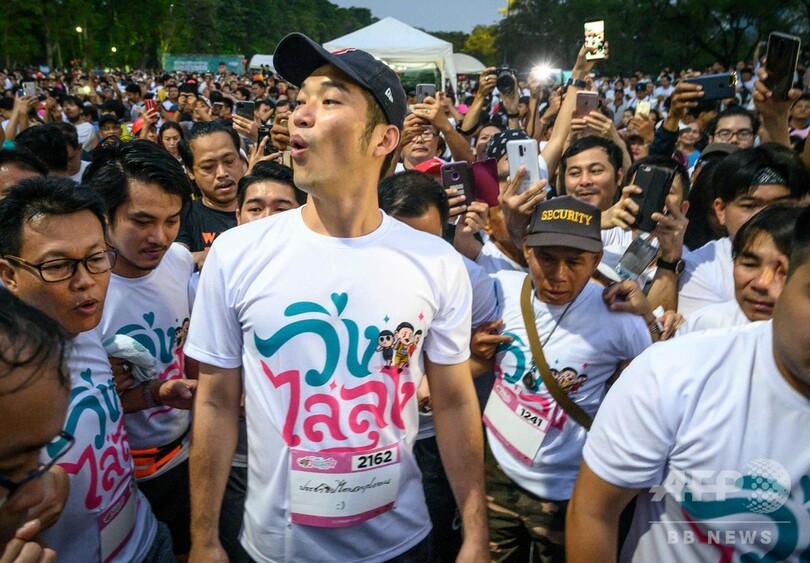 【1月13日 AFP】タイの首都バンコクで12日、「独裁に抗議するランニングイベント」が開かれ、約1万人が参加した。ランナーらは政府に抗議するスローガンを叫び、人気映画シリーズに登場した独裁からの自由を意味する3本指のサインを掲げた。同国では2014年のクーデター以降、反政府活動が続いている。