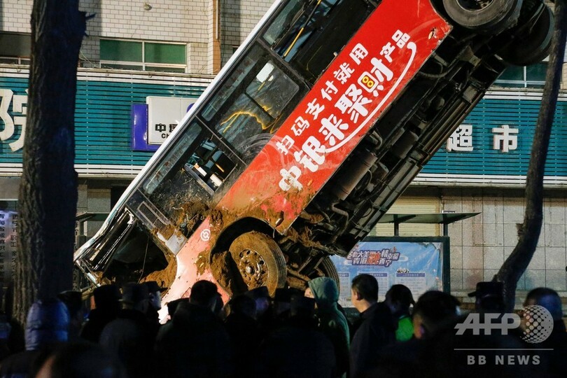 巨大陥没穴にバス転落、9人死亡 中国