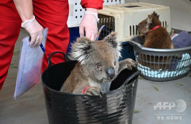 【1月15日 AFP】豪サウスオーストラリア(South Australia)州カンガルー島(Kangaroo Island)に設置された仮設の動物病院には連日、多数の負傷したコアラがネコ用キャリーバッグや洗濯かごで運ばれてくる。中には保護スタッフにしがみついて来院するコアラもいる。