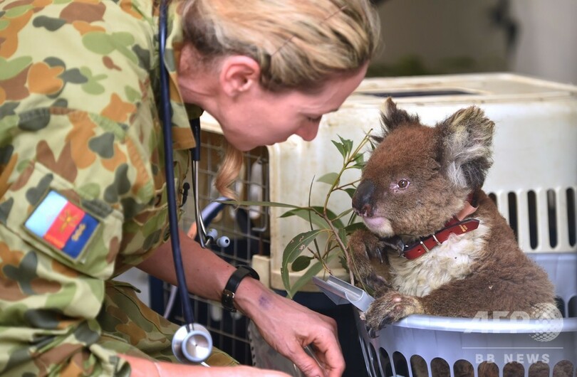 【1月15日 AFP】豪サウスオーストラリア(South Australia)州カンガルー島(Kangaroo Island)に設置された仮設の動物病院には連日、多数の負傷したコアラがネコ用キャリーバッグや洗濯かごで運ばれてくる。中には保護スタッフにしがみついて来院するコアラもいる。
