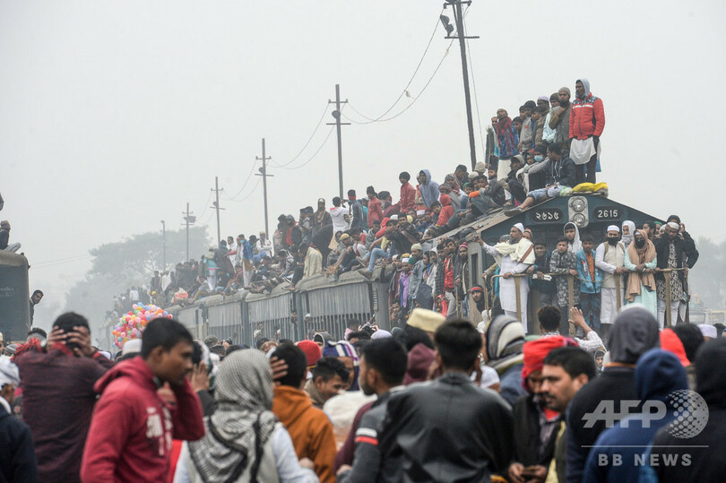 【1月20日 AFP】バングラデシュ・ダッカから北へ約30キロのトンギ(Tongi)で、毎年開催されているイスラム教徒の集会「ビッショ・イジュテマ(Biswa Ijtema)」の最後の祈り「アケリ・ムナジャト(Akheri Munajat)」に参加しようと、列車から列車へ飛び移る信者。(c)AFP