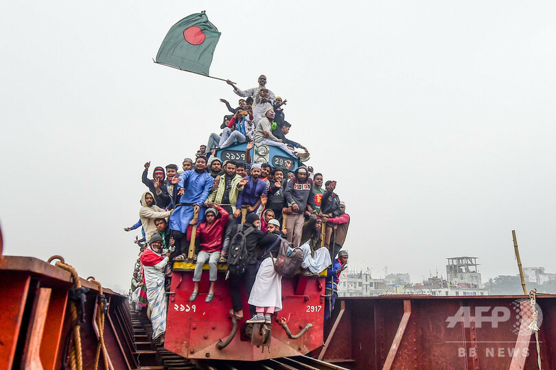 【1月20日 AFP】バングラデシュ・ダッカから北へ約30キロのトンギ(Tongi)で、毎年開催されているイスラム教徒の集会「ビッショ・イジュテマ(Biswa Ijtema)」の最後の祈り「アケリ・ムナジャト(Akheri Munajat)」に参加しようと、列車から列車へ飛び移る信者。(c)AFP