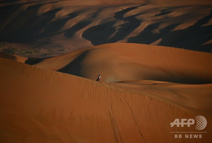 総合首位に立つホンダ(Honda)のリッキー・ブラベック(Ricky Brabec、米国)は11分48秒遅れの10位でフィニッシュし、同2位につけるキンタニージャにタイム差を大きく縮められている。(c)AFP