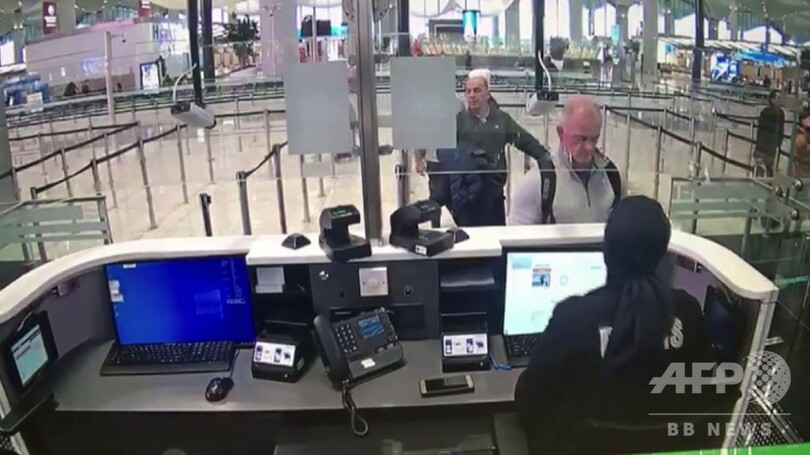 同通信社によると、公開された防犯カメラの映像には、イスタンブール空港(Istanbul Airport)の出入国審査場にいる2人が映っている。