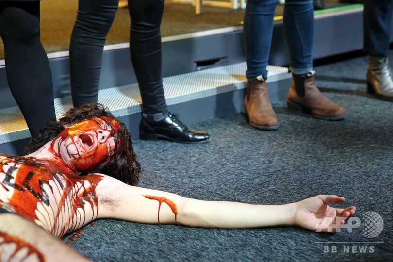 【1月19日 AFP】ベルギー首都ブリュッセルの警察は18日、同市で開催中の「ブリュッセルモーターショー(Brussels Motor Show)」で、気候変動の危機を訴える団体「絶滅への反逆(Extinction Rebellion)」の活動家らが血に見立てた赤い液体を展示車にまき、周囲に横たわって死んだふりなどをしたとして150人近くを逮捕した。