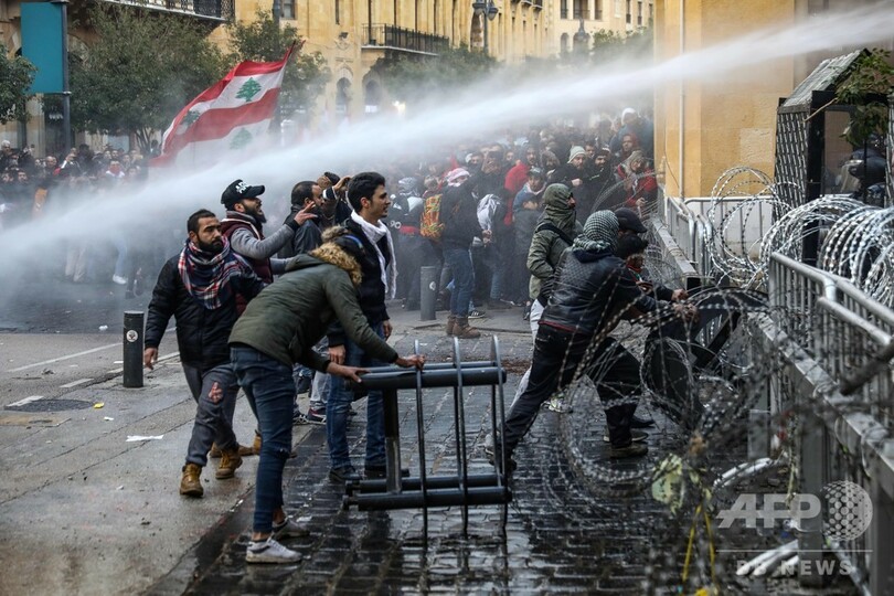 【1月19日 AFP】(更新)レバノンの首都ベイルートで18、19日の週末、投石する反政府デモ隊に治安部隊が催涙弾で応酬し、医療関係者によると2日間で530人以上が負傷した。