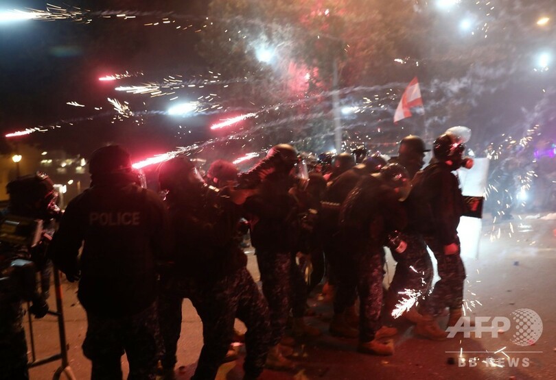 【1月19日 AFP】(更新)レバノンの首都ベイルートで18、19日の週末、投石する反政府デモ隊に治安部隊が催涙弾で応酬し、医療関係者によると2日間で530人以上が負傷した。