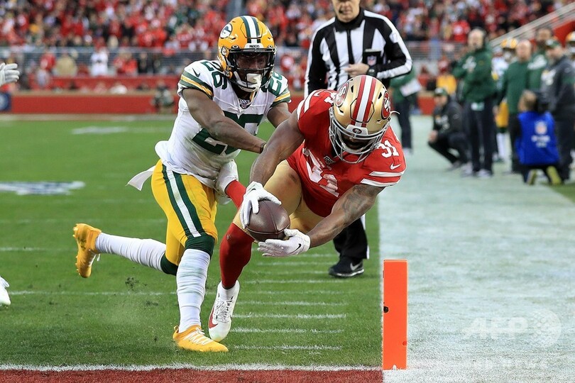 ランを軸としたフォーティナイナーズのオフェンスは、パッカーズの守備の穴を何度も突き、ランで220ヤード獲得と驚異的な数字を残したRBラヒーム・モスタート(Raheem Mostert)が、NFC決勝では新記録となるタッチダウンラン四つを決めた。モスタートがそのうち3本目を決めて27-0とした前半の時点で、試合の実質的な決着はついていた。