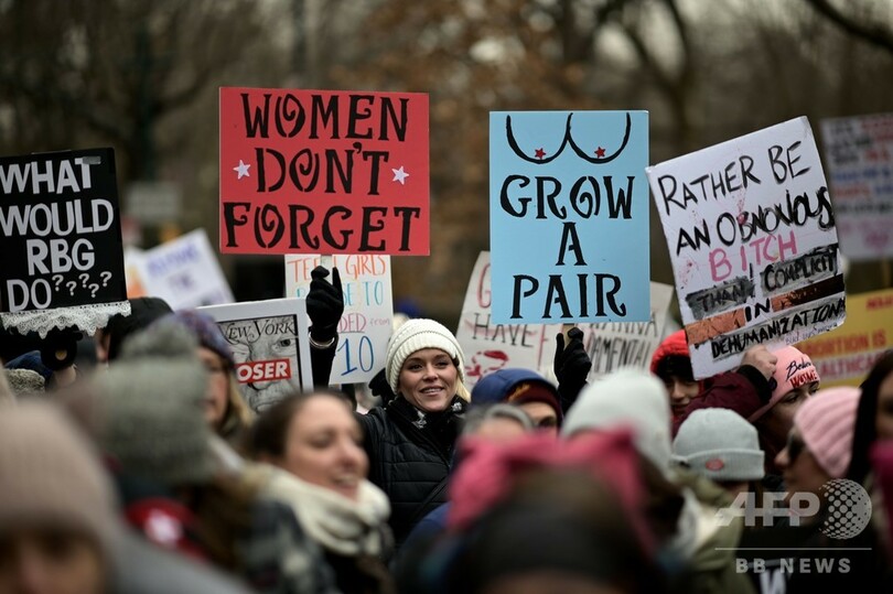 【1月20日 AFP】米首都ワシントンで18日、今や毎年恒例となったドナルド・トランプ(Donald Trump)米大統領に対する抗議デモが行われ、女性ら数千人がデモ行進を行った。