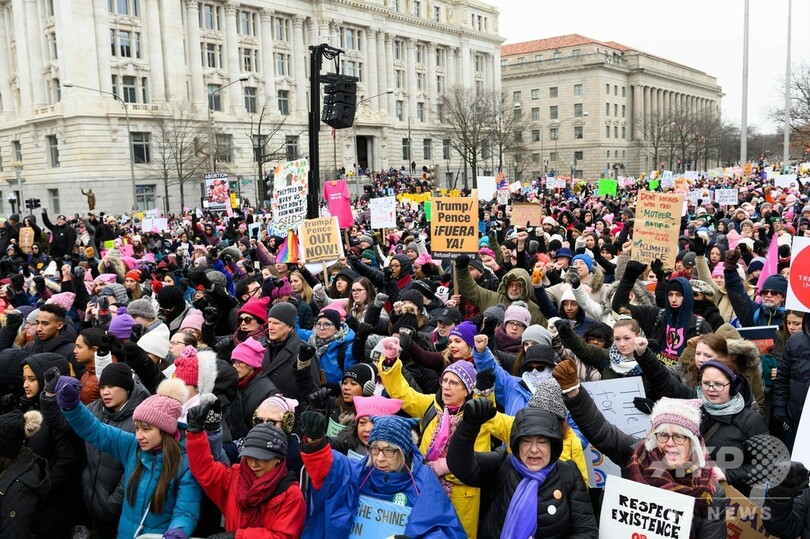 【1月20日 AFP】米首都ワシントンで18日、今や毎年恒例となったドナルド・トランプ(Donald Trump)米大統領に対する抗議デモが行われ、女性ら数千人がデモ行進を行った。