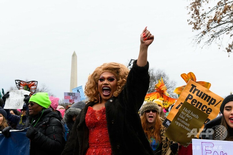 【1月20日 AFP】米首都ワシントンで18日、今や毎年恒例となったドナルド・トランプ(Donald Trump)米大統領に対する抗議デモが行われ、女性ら数千人がデモ行進を行った。