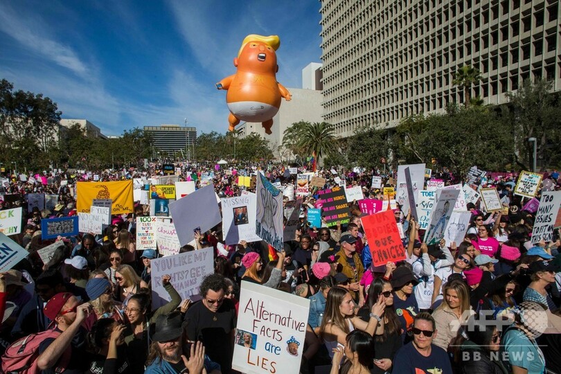 【1月20日 AFP】米首都ワシントンで18日、今や毎年恒例となったドナルド・トランプ(Donald Trump)米大統領に対する抗議デモが行われ、女性ら数千人がデモ行進を行った。