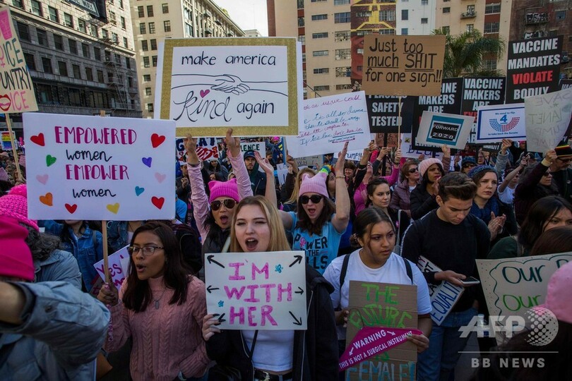 【1月20日 AFP】米首都ワシントンで18日、今や毎年恒例となったドナルド・トランプ(Donald Trump)米大統領に対する抗議デモが行われ、女性ら数千人がデモ行進を行った。
