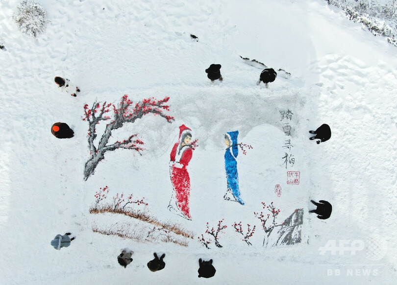 雪のキャンバスに鮮やかに…伝統絵画現る 中国・洛陽市