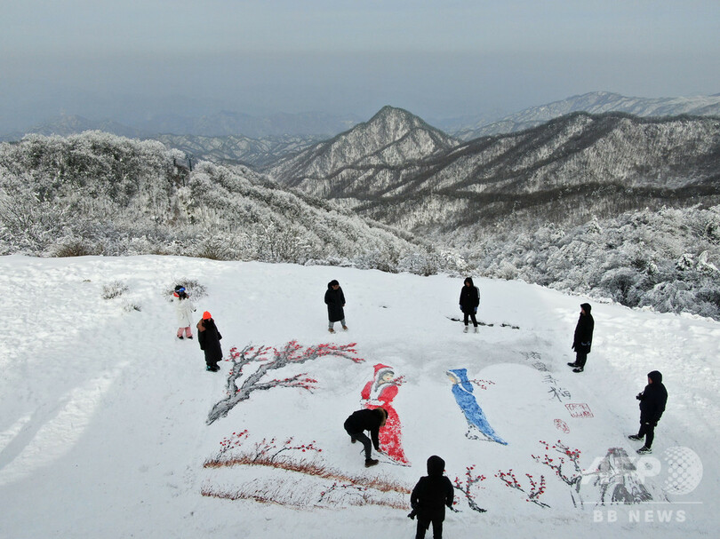 雪のキャンバスに鮮やかに…伝統絵画現る 中国・洛陽市