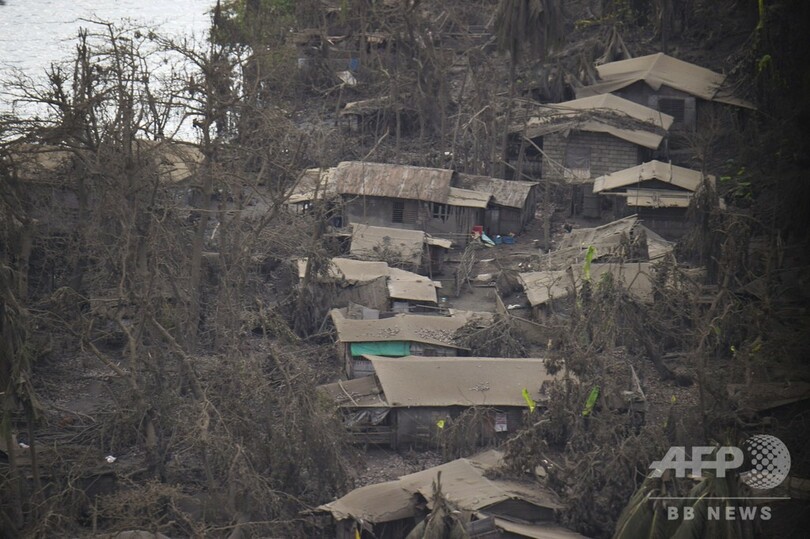 しかし、AFP記者が21日に火山周辺上空を飛行するフィリピン軍のヘリコプターに同乗したところ、火山灰に覆われた家屋の近くには10頭ほどの白い牛がうろつき、湖岸にはカラフルな船が複数停泊していた。
