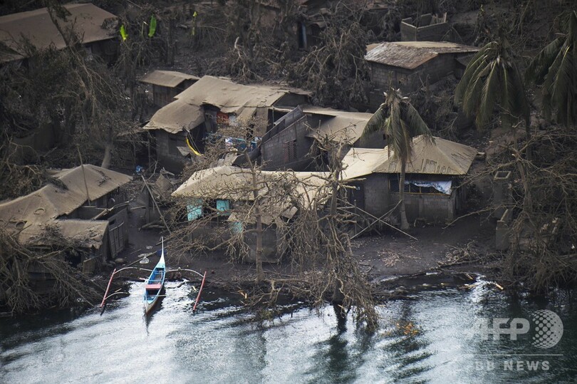 しかし、AFP記者が21日に火山周辺上空を飛行するフィリピン軍のヘリコプターに同乗したところ、火山灰に覆われた家屋の近くには10頭ほどの白い牛がうろつき、湖岸にはカラフルな船が複数停泊していた。