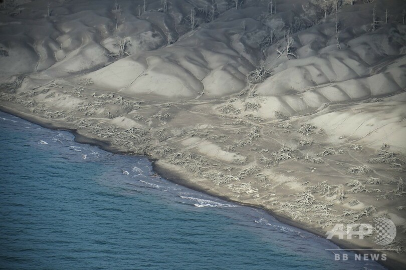 しかし、AFP記者が21日に火山周辺上空を飛行するフィリピン軍のヘリコプターに同乗したところ、火山灰に覆われた家屋の近くには10頭ほどの白い牛がうろつき、湖岸にはカラフルな船が複数停泊していた。