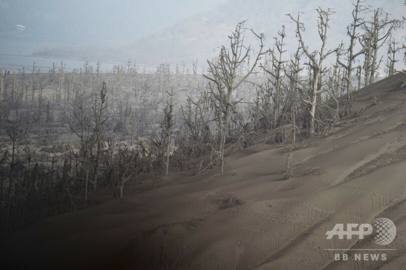 しかし、AFP記者が21日に火山周辺上空を飛行するフィリピン軍のヘリコプターに同乗したところ、火山灰に覆われた家屋の近くには10頭ほどの白い牛がうろつき、湖岸にはカラフルな船が複数停泊していた。