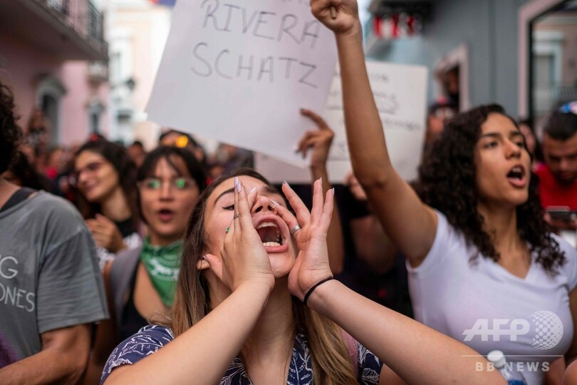 首都サンフアンでは20日、数百人が抗議デモを行い、わずか6か月前に前知事を辞任に追い込んだのと同様、ワンダ・バスケス・ガルセド(Wanda Vazquez Garced)知事の退陣を迫った。(c)AFP