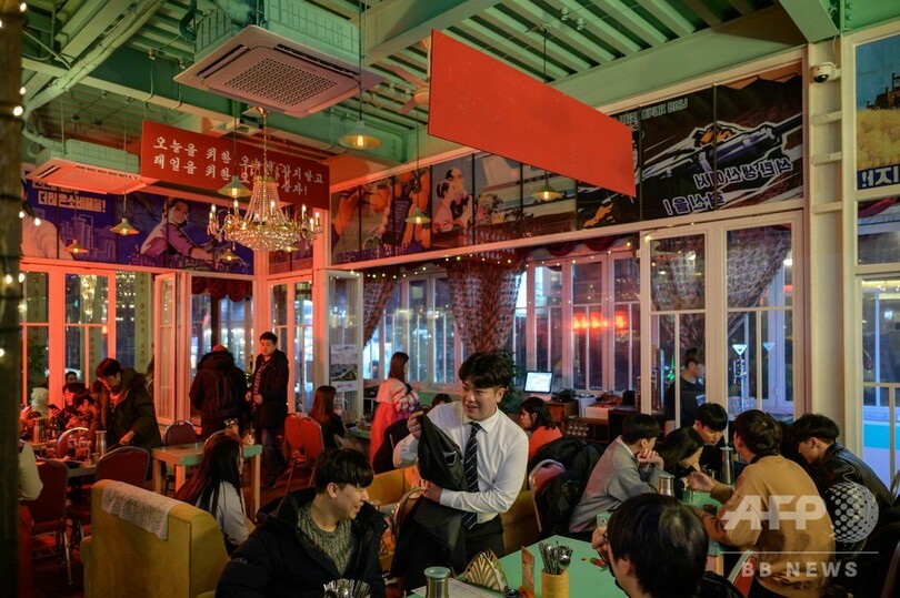 【2月12日 AFP】韓国の首都ソウルのナイトスポットが集まる地区、弘大(Hongdae)の一角に、「平壌バー(Pyongyang Bar)」はひっそりとたたずんでいる。ソウル唯一の、北朝鮮をモチーフにしたバーだ。ネオンきらめく街に立つ小さなビルの外壁には、「見よ、平壌バーだ!」というスローガンを指さす北朝鮮の建設作業員風の人物が描かれている。