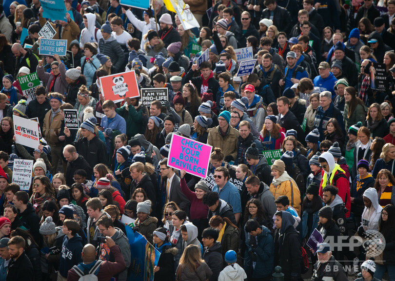 マーチフォーライフは、今年で47回目。ロー対ウェイド裁判の判決が下された日の前後に行われるのが慣例となっている。(c)AFP