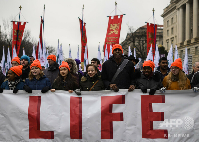 マーチフォーライフは、今年で47回目。ロー対ウェイド裁判の判決が下された日の前後に行われるのが慣例となっている。(c)AFP