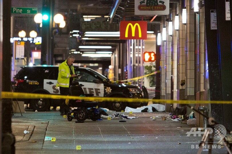 米シアトル中心街で発砲、1人死亡7人負傷 容疑者は逃走