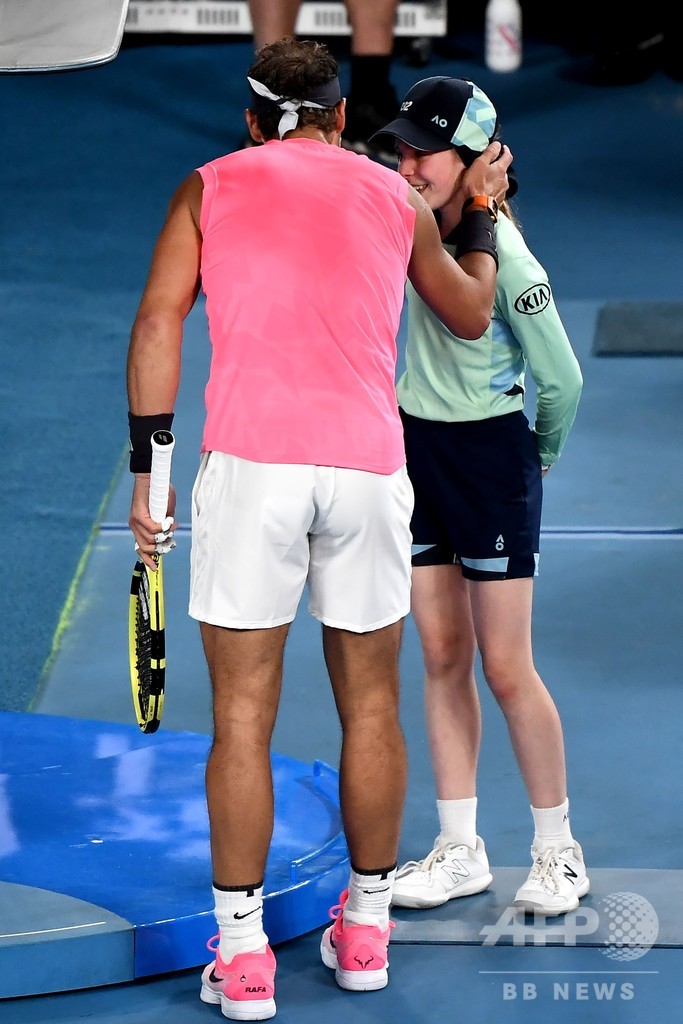 【1月24日 AFP】23日に行われた全豪オープンテニス(Australian Open Tennis Tournament 2020)の男子シングルス2回戦で、大会第1シードのラファエル・ナダル(Rafael Nadal、スペイン)は自身の強烈なショットが直撃したボールガールに走り寄り、無事を確かめながら頬にキスをして会場のロッド・レーバー・アリーナ(Rod Laver Arena)を和ませた。