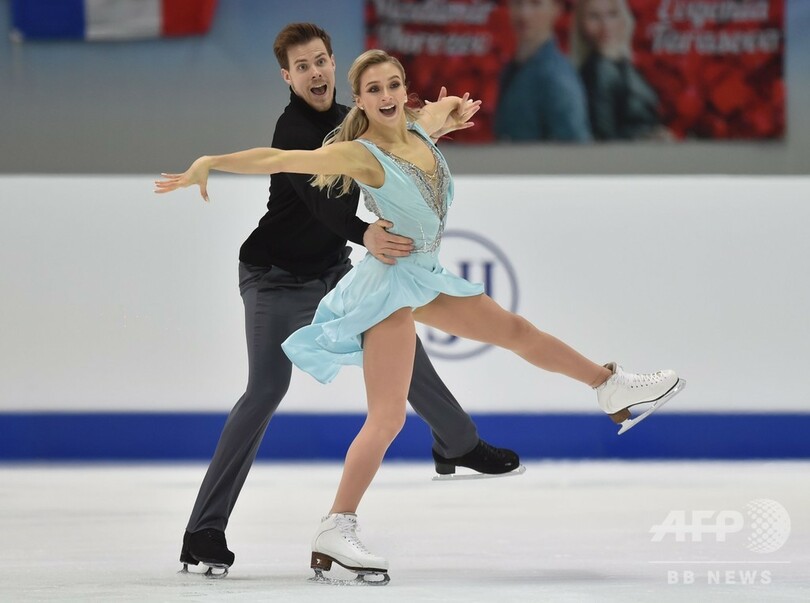 イタリアのシャルレーヌ・ギニャール(Charlene Guignard)/マルコ・ファッブリ(Marco Fabbri)組が、2位と4.07点差で3位に続いている。(c)AFP