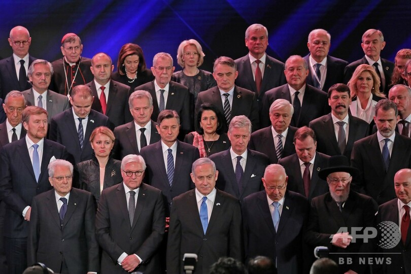 【1月24日 AFP】中東のエルサレムで23日、アウシュビッツ・ビルケナウ(Auschwitz-Birkenau)強制収容所の解放から75年を前に追悼式典が開かれ、首脳らが式典に出席した。イスラエルと米国は、イランをかつてのナチス・ドイツ(Nazi Germany)の脅威になぞらえ、同国に対して行動を起こすよう呼び掛けた。