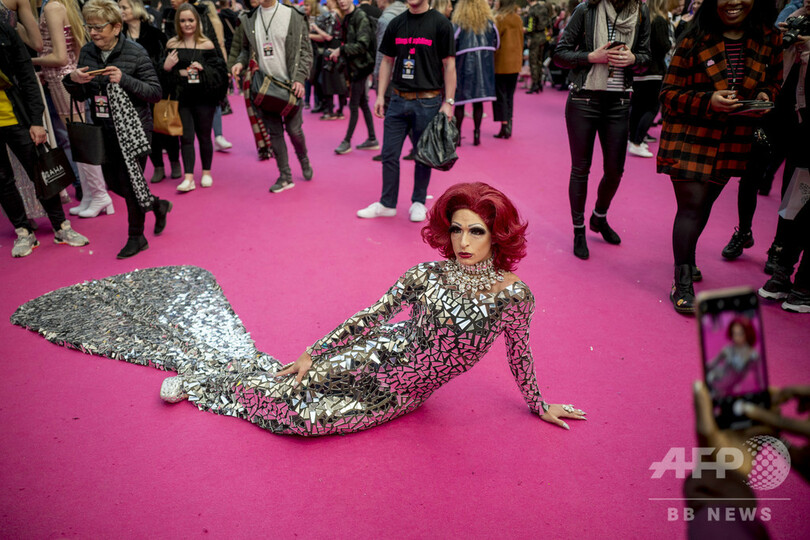 ドラァグクイーンとして活躍する米国人タレント、ルポール(RuPaul)の名を冠した同イベントは、ロンドンのほか米ロサンゼルスでも開かれ、多くのドラァグクイーンらが集まる。(c)AFP