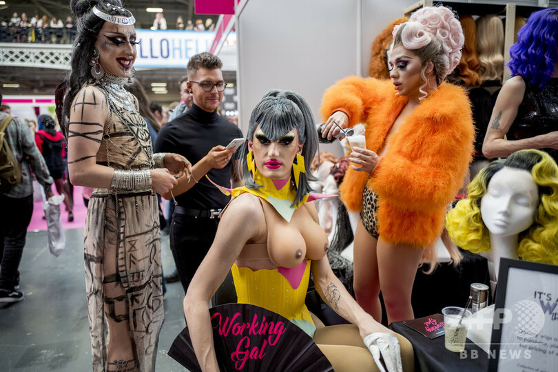 ドラァグクイーンとして活躍する米国人タレント、ルポール(RuPaul)の名を冠した同イベントは、ロンドンのほか米ロサンゼルスでも開かれ、多くのドラァグクイーンらが集まる。(c)AFP