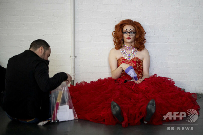 ドラァグクイーンとして活躍する米国人タレント、ルポール(RuPaul)の名を冠した同イベントは、ロンドンのほか米ロサンゼルスでも開かれ、多くのドラァグクイーンらが集まる。(c)AFP