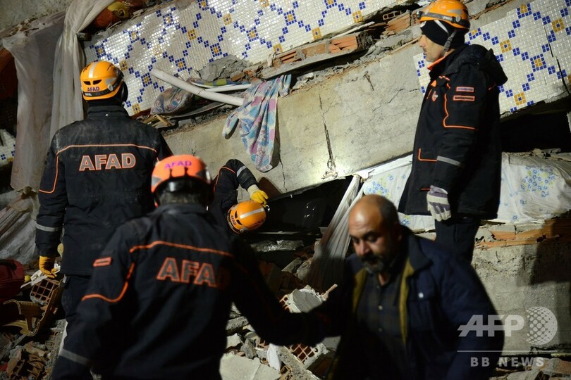 【1月25日 AFP】(更新)トルコ災害緊急事態対策庁(AFAD)によると、同国東部で24日に発生したマグニチュード(M)6.8の強い地震による死者は少なくとも21人に上り、1000人以上が負傷、少なくとも30人が行方不明になっている。25日には、倒壊した建物の下敷きになった生存者の捜索救助活動が行われ、これまでに妊婦1人を含む5人が救出された。