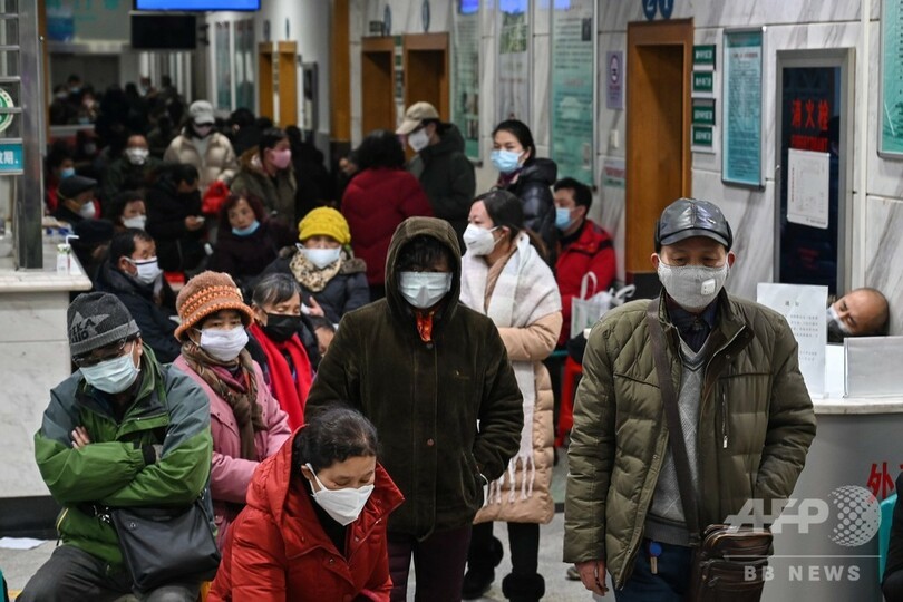 25日、流行の中心地である中部・湖北(Hubei)省武漢(Wuhan)の病院では、診察待ちの人々が怒りと不満を募らせていた。