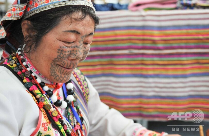 顔の入れ墨が語る文化、トールン族の最後の「紋面女」 中国・雲南