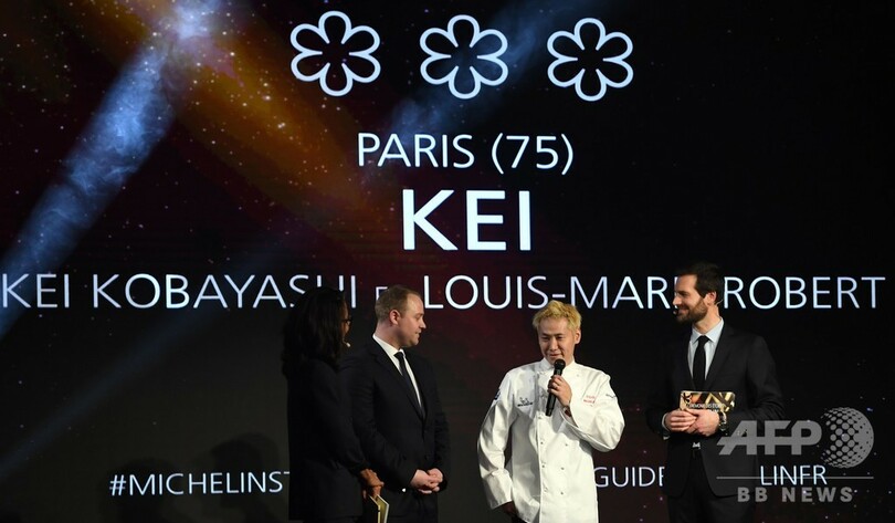 【1月28日 AFP】(更新、写真追加)日本人シェフ、小林圭(Kei Kobayashi)さん(42)がフランス・パリに構えるレストラン「ケイ(Kei)」が27日、格付け本「ミシュランガイド(Michelin Guide)」フランス版で日本人初となる三つ星を獲得した。