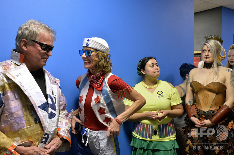 【1月28日 AFP】米マサチューセッツ州リン(Lynn)にあるギャラリー「ギャラリーズ・アット・リン・アート(Galleries at Lynn Arts)」でこのほど、廃棄物を素材として利用したファッションショー「Rubbish to Runway(『ごみからランウェイに』の意)」が開催され、レジ袋や梱包(こんぽう)材、革の切れ端、プラスチックのフォークやスプーン、新聞のマイクロフィルム、瓶のふた、見取り図の紙などを用いたドレスや上着が披露された。