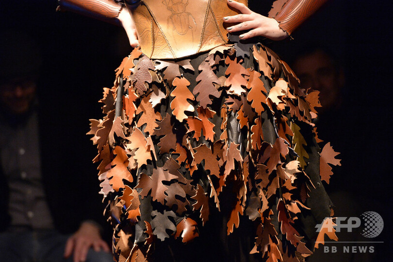 【1月28日 AFP】米マサチューセッツ州リン(Lynn)にあるギャラリー「ギャラリーズ・アット・リン・アート(Galleries at Lynn Arts)」でこのほど、廃棄物を素材として利用したファッションショー「Rubbish to Runway(『ごみからランウェイに』の意)」が開催され、レジ袋や梱包(こんぽう)材、革の切れ端、プラスチックのフォークやスプーン、新聞のマイクロフィルム、瓶のふた、見取り図の紙などを用いたドレスや上着が披露された。