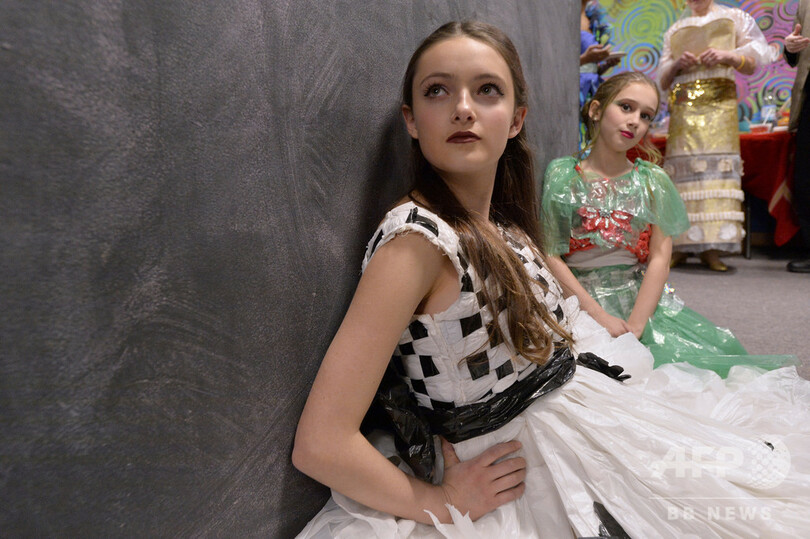 「ごみからランウェイに」 レジ袋や瓶のふたでファッションショー