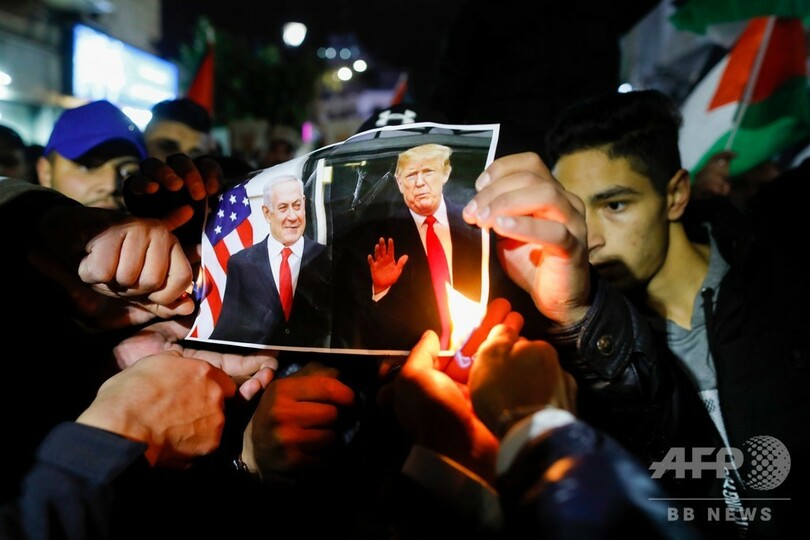 【1月29日 AFP】(更新)ドナルド・トランプ(Donald Trump)米大統領は28日、長きにわたり先延ばししてきたイスラエル・パレスチナ間の和平案を公表し、中東地域の「新たな夜明け」を約束した。ただパレスチナ側は、極端に偏った内容だとして和平案を拒絶している。