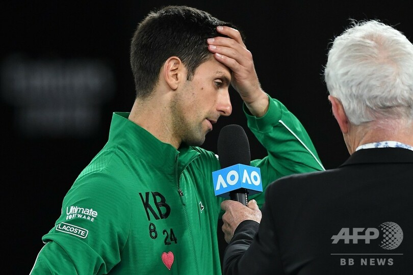 ミロス・ラオニッチ(Milos Raonic、カナダ)を退けて勝ち上がったジョコビッチは、「KB」と刺しゅうされたウエアを着てオンコートインタビューを受け、ブライアント氏が次女ら8人と共に墜落事故で死亡した知らせに「胸が張り裂けそうだった」と話した。