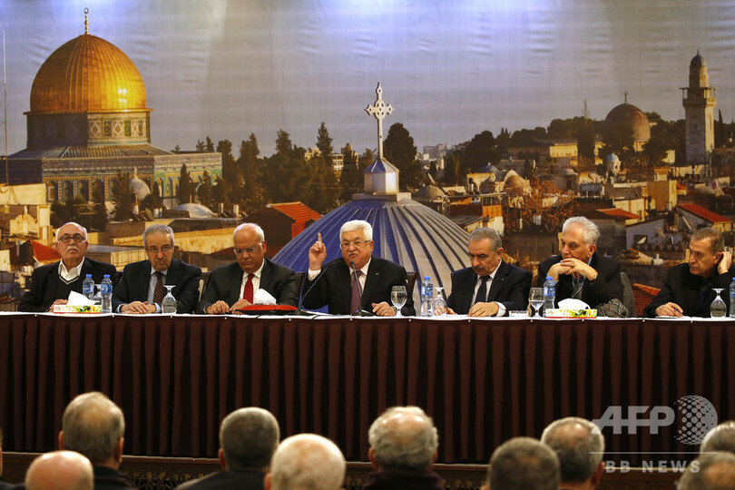 パレスチナ自治政府のマフムード・アッバス(Mahmud Abbas)議長は、ヨルダン川西岸(West Bank)のラマラ(Ramallah)で各派閥や組織と会議を行った後、「いかなる形でもこの案に反対する」と表明した。