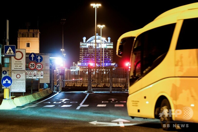 クルーズ船には同港で新たに乗客約1000人が乗り込み、約1400人は旅を終えて下船する見通し。イタリアのメディアによると、クルーズ船の運航会社は下船予定の乗客に対し、食費や宿泊費の提供を申し出ていた。また同船舶は31日に航行を再開するとしている。(c)AFP/Sonia Logre with Ella Ide in Rome