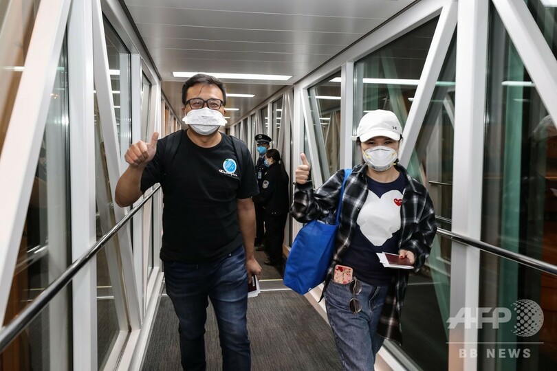 バンコクから飛び立ったアモイ航空(Xiamen Airlines)のチャーター機は31日夜、同省武漢に到着。マスクをした73人は、白い全身防護服を着た保健当局者が脇に立つ客室ドアを通ってチャーター機から降り、カメラを構えた報道陣に向かって笑顔で手を振った。その後間もなくして2機目がコタキナバルから武漢に到着した。