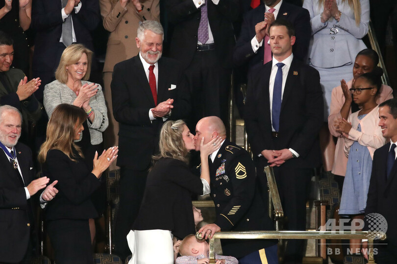 【2月6日 AFP】ドナルド・トランプ(Donald Trump)米大統領が4日に臨んだ一般教書演説の中で、米兵とその家族が久々の再会を果たす一幕があった。米国で最も格調が重んじられる場の一つで、テレビのリアリティー番組を思わせる演出だった。