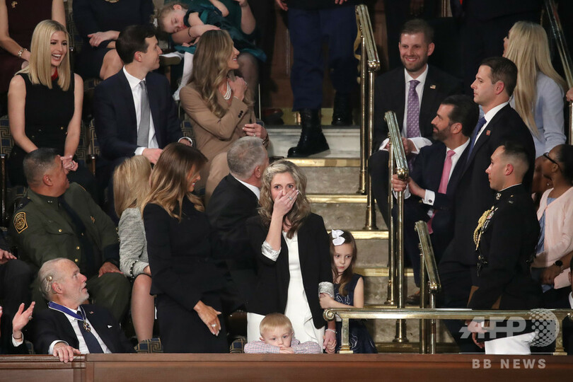 アフガン派遣の米兵一家、涙の再会 トランプ氏が一般教書演説で演出