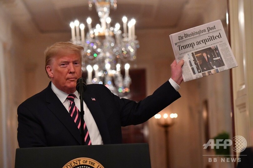 【2月7日 AFP】ドナルド・トランプ(Donald Trump)米大統領は6日、ホワイトハウス(White House)で、職権乱用と議会妨害の罪について5日の上院の弾劾裁判で無罪評決が下されたことを祝い、「悪意ある」民主党議員らに対し勝利宣言を行った。感情的な演説では、まとまりに欠ける内容ながらも政権全体に影を落とした弾劾調査に対する怒りをあらわにした。